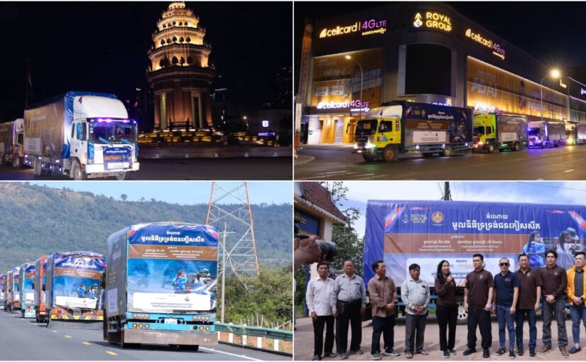 អំណោយរបស់សប្បុរសជន ចំនួន ១០រថយន្តធំៗ តាមរយៈមូលនិធិទ្រទ្រង់ជនភៀសសឹក ដឹកនាំដោយលោកជំទាវ អ្នកឧកញ៉ា ម៉ៅ ចំណាន គិតម៉េង ត្រៀមដឹកយកទៅចែកជូនជនភៀសសឹក និងវីរកងទ័ព
