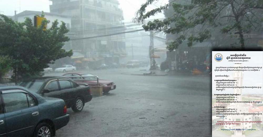 តំបន់នៅទំនាបកណ្តាល ជួរភ្នំដងរែក ខ្ពង់រាបឦសាន និងតំបន់មាត់សមុទ្រ នឹងមានភ្លៀងផ្គរ រន្ទះ ពីខ្សោយទៅច្រើន និងអាចមានភ្លៀង រន្ទះ ផ្សែងក្រូចជាច្រើន និងមានសីតុណ្ហភាពអប្បបរមាពី ២៣អង្សាសេ ទៅ ២៥អង្សាសេ និងអតិបរមាពី៣៣អង្សាសេទៅ៣៥អង្សា៕