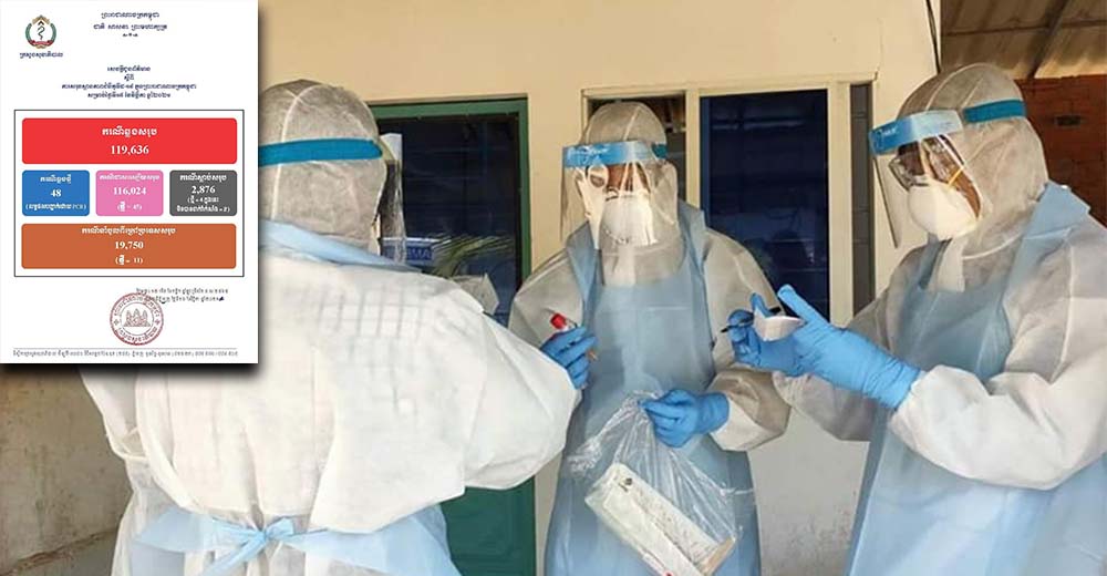 សូមបញ្ជាក់ថា គិតត្រឹមថ្ងៃទី១៦ ខែវិច្ឆិកា ឆ្នាំ២០២១ នៅទូទាំងប្រទេសកម្ពុជា បានរកឃើញអ្នកឆ្លងជំងឺកូវីដ១៩ សរុបចំនួន ១១៩.៦៣៦នាក់, អ្នកជាសះស្បើយសរុបចំនួន ១១៦.០២៤នាក់ និងស្លាប់សរុបចំនួន ២.៨៧៦នាក់៕