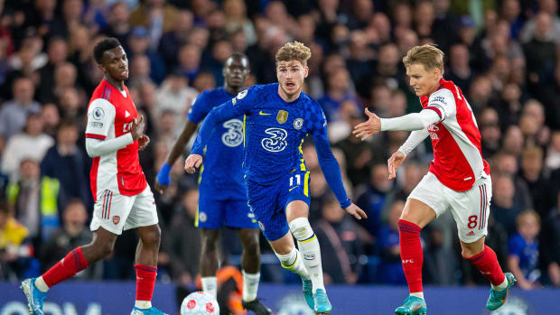 Eddie Nketiah ត្រូវបានជ្រើសរើសជំនួសកីឡាករ Alexandre Lacazette ក្នុងតំបន់ប្រយុទ្ធរបស់ Arsenal ហើយគេបានផ្តល់ជំនឿទុកចិត្តដល់អ្នកចាត់ការ Mikel Arteta នៅពេលដែលគេស៊ុតនាំមុខឱ្យក្រុមកាំភ្លើងធំ នៅនាទីទី១៣។ ខណៈ Timo Werner បានតាមស្មើ ៤នាទីក្រោយមក មុនពេល Emile Smith Rowe បានផ្តួលអ្នកចាំទី Edouard Mendy ដោយការស៊ុតបន្ថែមគ្រាប់ទី២ សម្រាប់ក្រុមភ្ញៀវនៅនាទីទី២៧។ Chelsea បានវាយបកម្ដងទៀត ដោយប្រធានក្រុម Cesar Azpilicueta ទម្លុះសំណាញ់ទី នៅនាទីទី៣២