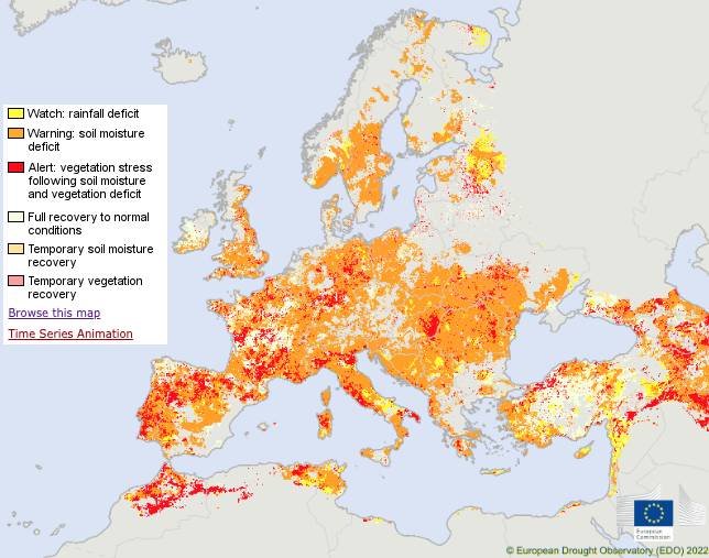 នៅក្នុងរបាយការណ៍វិភាគក្នុងខែសីហារបស់ខ្លួន អង្គការឃ្លាំមើលគ្រោះរាំងស្ងួតអឺរ៉ុប (EDO) បាននិយាយថា ប្រហែល 47 ភាគរយនៃទ្វីបអឺរ៉ុប កំពុងស្ថិតក្រោមលក្ខខណ្ឌព្រមាន ដោយសារតែកង្វះសំណើមដីធ្ងន់ធ្ងរ។ ប្រទេសចំនួន 17 ភាគរយទៀតស្ថិតក្នុងស្ថានភាពប្រកាសអាសន្ន។