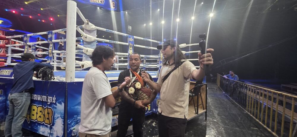 ភ្នំពេញ៖ អ្នកផលិតមាតិកាអន្តរជាតិ Mooch Travels បានបង្ហាញវត្តមានដ៏ពិសេសនៅស្ទូឌីយ៉ូ Camwood ក្នុងសប្តាហ៍នេះ ផ្តល់ឱ្យទស្សនិកជនពិភពលោកបានឃើញពីទិដ្ឋភាពនៃវិស័យប្រដាល់គុនខ្មែរដែលកំពុងរីកចម្រើនយ៉ាងឆាប់រហ័ស។