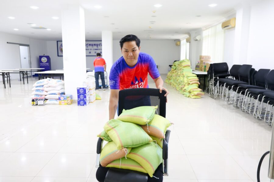 ភ្នំពេញ៖ ក្រុមការងារមូលនិធិសភាពាណិជ្ជកម្មកម្ពុជា កំពុងរៀបចំវេចខ្ចប់នូវគ្រឿងឧបភោគបរិភោគ និងសម្ភារៈប្រើប្រាស់ចាំបាច់ផ្សេងៗ ដែលជាអំណោយសប្បុរសធម៌របស់ មហាគ្រួសារសភាពាណិជ្ជកម្មកម្ពុជា និងសប្បុរសជន បានបរិច្ចាគជូន មូលនិធិសភាពាណិជ្ជកម្មកម្ពុជា ដើម្បីត្រៀមយកចែកជូន វីរកងទ័ពកម្ពុជា និងជនភៀសសឹក នៅថ្ងៃទី ២០ខែធ្នូ ឆ្នាំ២០២៥។