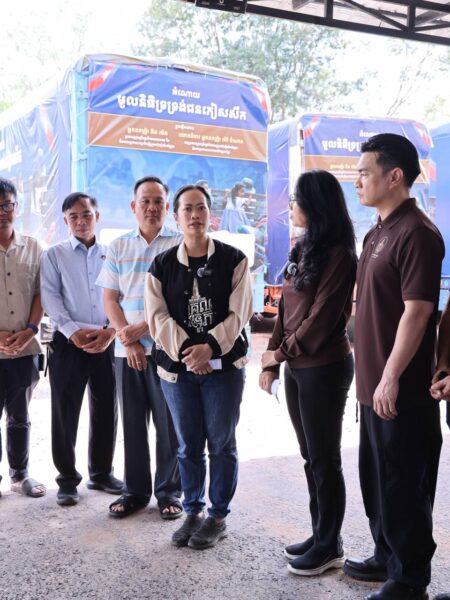 សូមបញ្ជាក់ថា ការចែកអំណោយជាគ្រឿងឧបភោគបរិភោគ និងសម្ភារប្រើប្រាស់ពីសំណាក់មូលនិធិទ្រទ្រង់ជនភៀសសឹក ជូនដល់ជនភៀសសឹកនៅខេត្តកោះកុង នាពេលនេះ គឺជាការគិតគូរពីសំណាក់អ្នកឧកញ៉ា គិត ម៉េង និងលោកជំទាវ អ្នកឧកញ៉ា ម៉ៅ ចំណាន គិតម៉េង ចំពោះការលំបាករបស់ប្រជាពលរដ្ឋនៅខេត្តកោះកុង ដែលរងគ្រោះ និងរងផលប៉ះពាល់ពីការឈ្លាពានរបស់កងទ័ពសៀម ដែលបានបង្ខំឱ្យពួកគាត់ចាកចេញពីលំនៅឋាន។