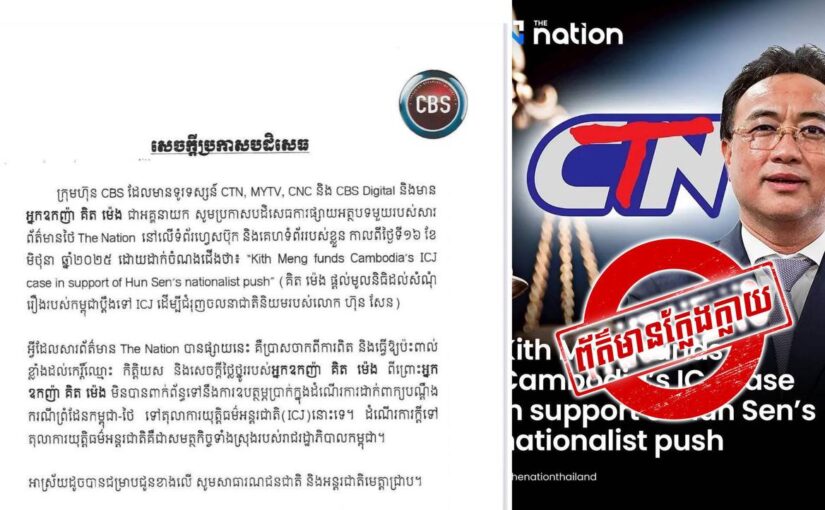 Cambodian Broadcasting Service Refutes Report on Neak Oknha Kith Meng’s Alleged Funding of ICJ Case